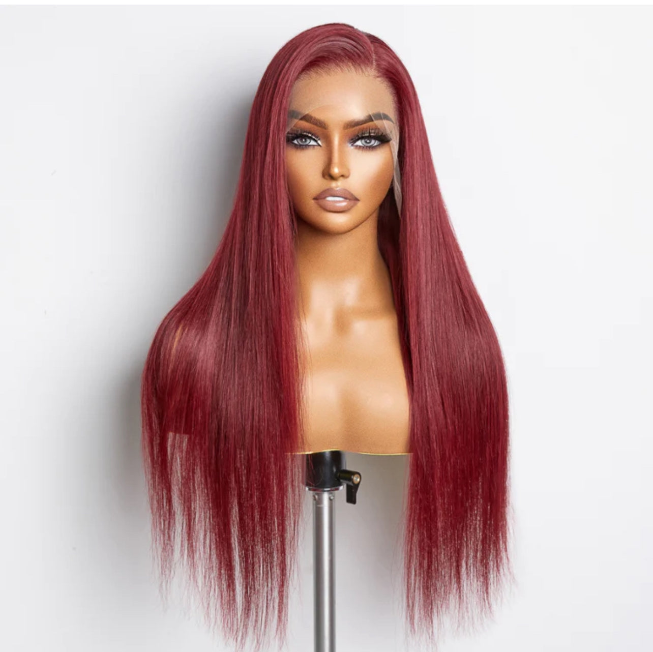24 Inches Burgundy 13"x4" Lace Front Straight Wig Pre-Plucked Free Part 150% Density-100% Human Hair